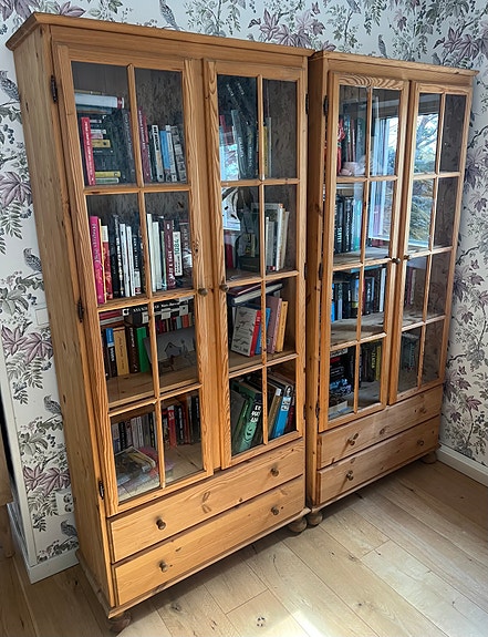Fina trä Vitrinskåp 2st, spröjsade dörrar