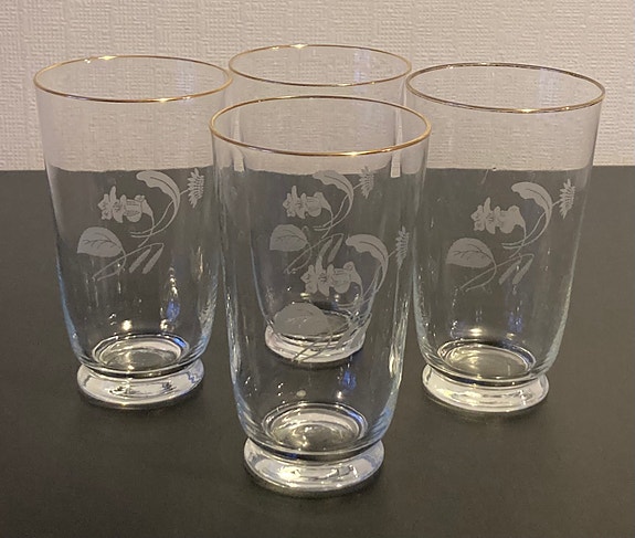 Vintage! 4st vackra gamla handblåsta glas guldkant och blomdekor