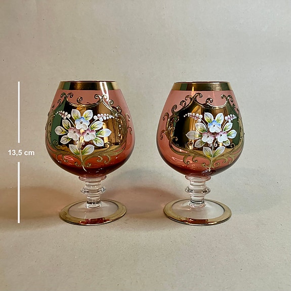 Brandyglas dekorerade med blommotiv, 2 st.