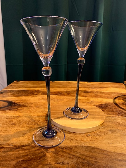 Anders Wingård. Pokalglas, 2 stycken, glashyttan, Baskemölla, signerade