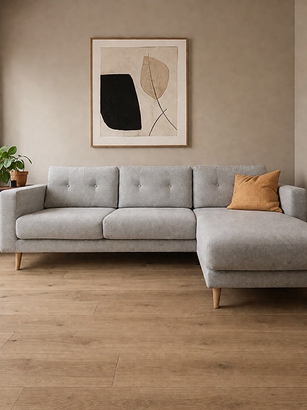 Grå hörnsoffa
