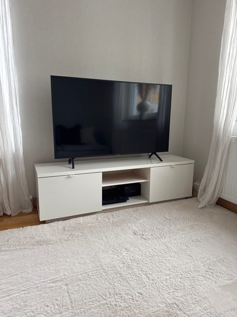 TV-bänk och TV.