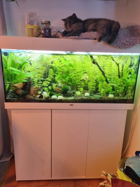Akvarium med skåp och tillbehör