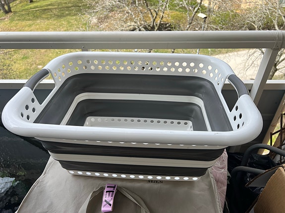 Hopfällbar tvättkorg plast grå/vit