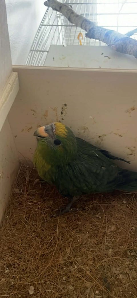Blåpannad Amazon med bur