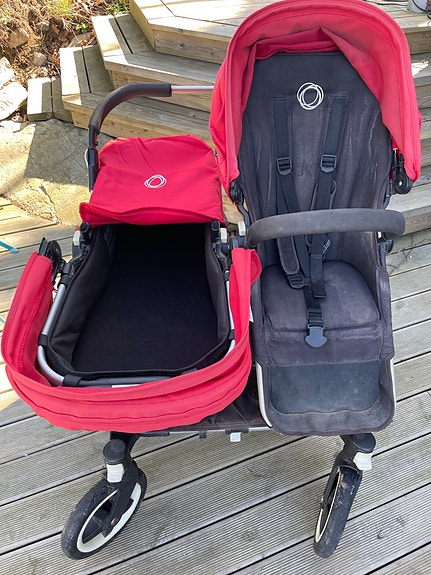 Bugaboo syskonvagn dubbel barnvagn röd/svart