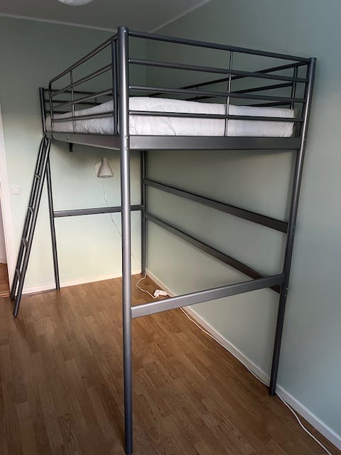 Loftsäng, småstad. Vit