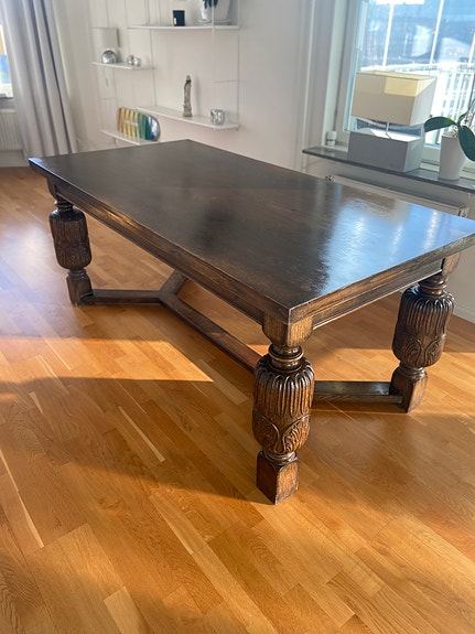 Antikt träbord med snidade ben