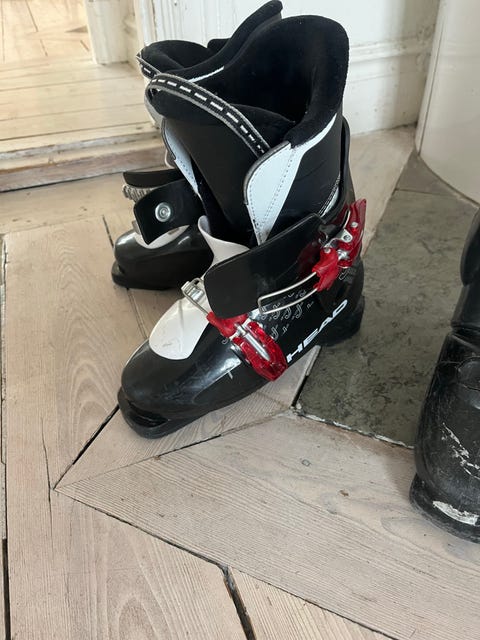 Barnskidor 120cm och pjäxor 21.5