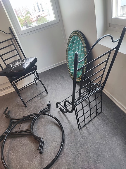 1 499 krCafeset två stolar, två-sits sofa med gråa dynor och runt bord svartJärna7 aprLägg till i favoriter.