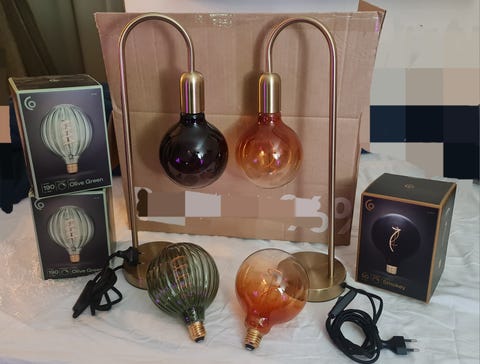 Bordslampa sten metall linne