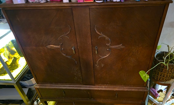 Äldre byrå med stenskiva