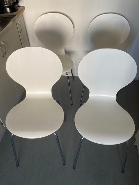 Fyra vita matsals stolar