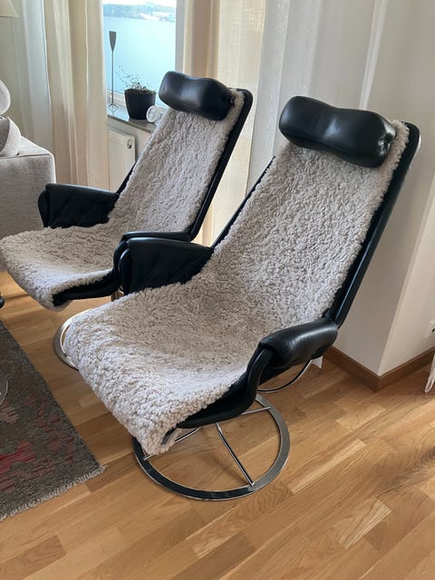 Fårskinnsfåtölj med fotpall