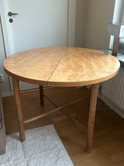 Runt matbord med iläggsskiva