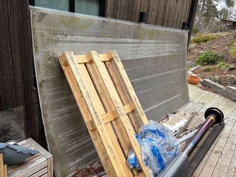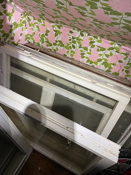Gamla spröjsade fönster (veranda)