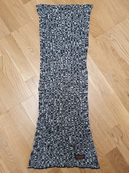 49 krLång ribbstickad halsduk i svart, vitt och grått från NetWorkStl. One sizeNacka8 aprKöp nuLastbil i rörelseKan skickasLägg till i favoriter.