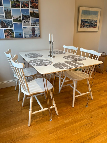Matbord m fyra stolar