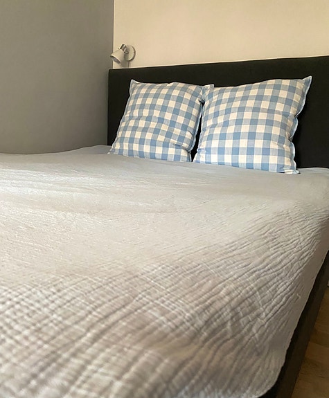 250 krHärligt blått överkast + 2 blårutiga kuddfodral – fräscha och fina! HemtexLidingö6 aprLägg till i favoriter.
