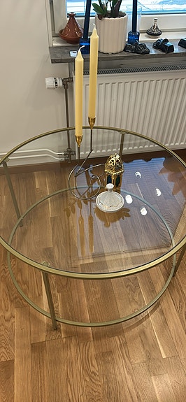 400 krRunt soffbord glas med mässingsfärgad metallramStockholm1 dagLägg till i favoriter.Öppna annons