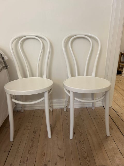 Runt vit matbord och 2st stolar