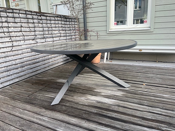 1 500 krRunt glasbord med två svarta stolar och beige dyna till uteplatsSolna1 dagLägg till i favoriter.Öppna annons