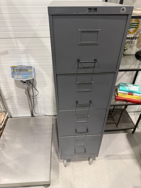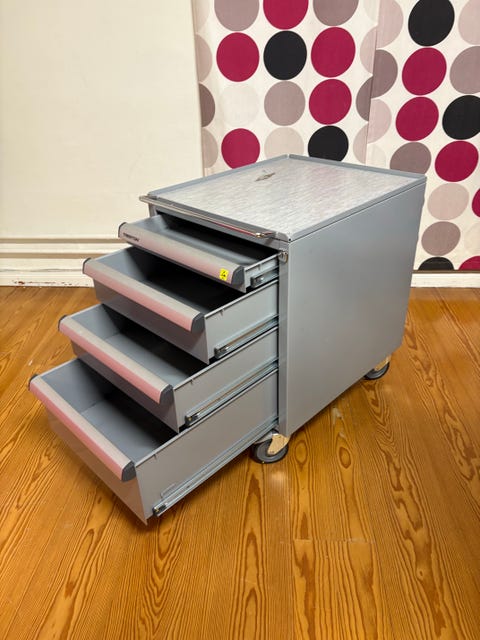 Hylla hurts med arbetsskiva på hjul