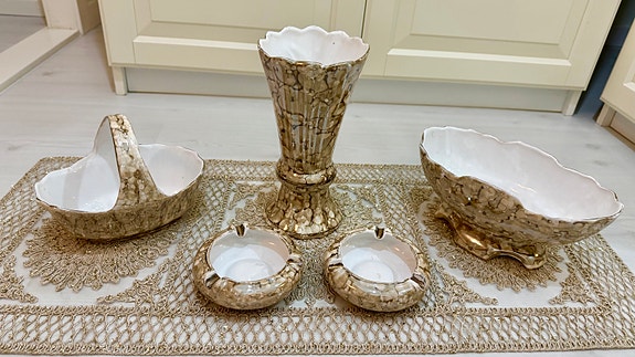 1 250 kr5 delar Keramik Vas och Askfat Set Guld ,Beige och VitKista2 dagarKöp nuLastbil i rörelseKan skickasLägg till i favoriter.