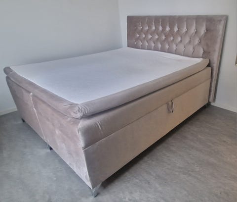 Sängram i sammet med förvaring