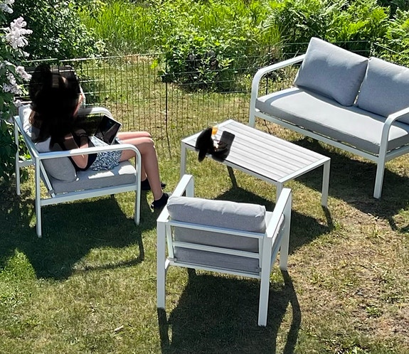 2 500 krVit loungesoffgrupp med bord och dynor för uteplatsTäby5 timLägg till i favoriter.Öppna annons
