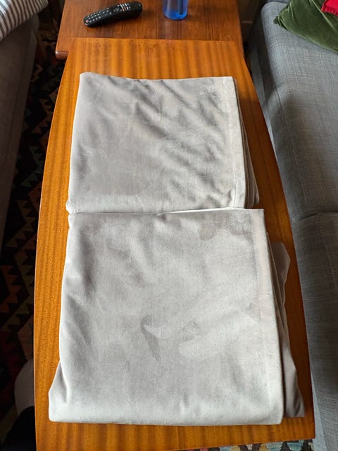 Ljusgrå sammetsgardiner