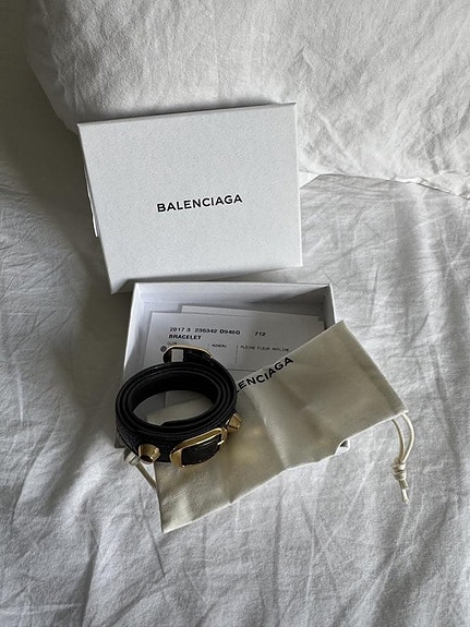 1 300 krBalenciaga svart läderarmband med gulddetaljerLidingö13 timKöp nuLastbil i rörelseKan skickasLägg till i favoriter.Öppna annons
