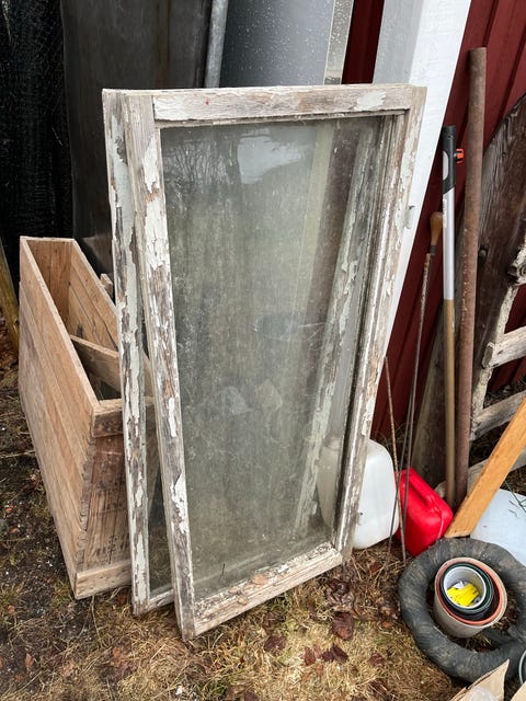 Bortskänkes: fönsterkarmar (delvis med glas)