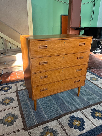 Teakbyrå med 4 lådor 50 tal