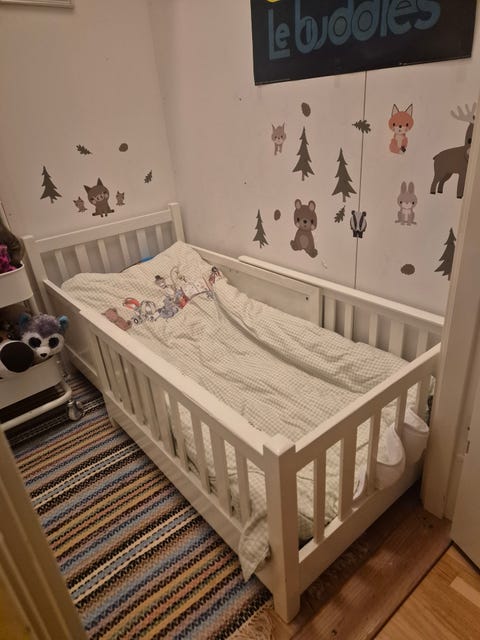 Spjälsäng dubbel storlek på hjul