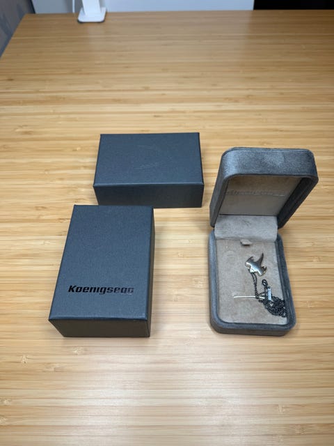 2 199 krKoenigsegg Silver Ghost Necklace — Oanvänt med ask & kartongEnskede Gård5 dagarGratis frakt•Köp nuLastbil i rörelseKan skickasLägg till i favoriter.