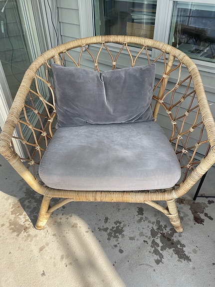 Fåtölj rotting med grå dynor
