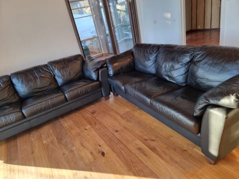 Svart lädersoffa 3-sits