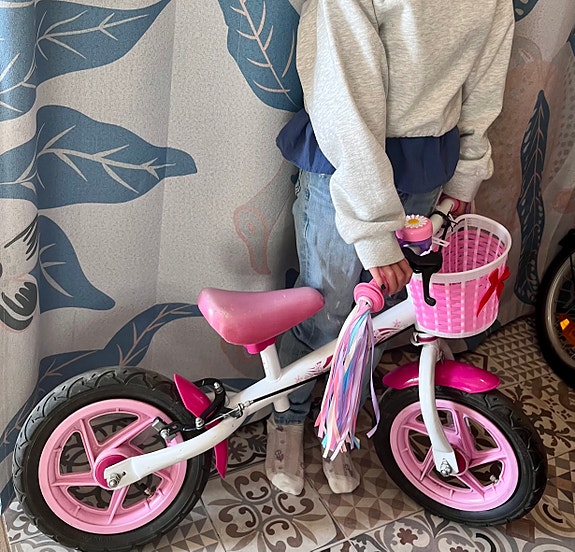 Gåcykel rosa vit