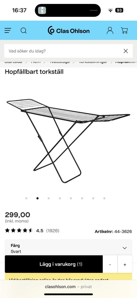 125 krTorkställ svart hopfällbart torkställ för både inomhus och utomhusTäby1 timLägg till i favoriter.