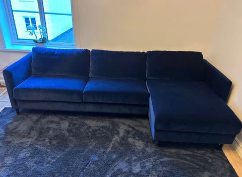 Blå superfin 3-sits sammetssoffa