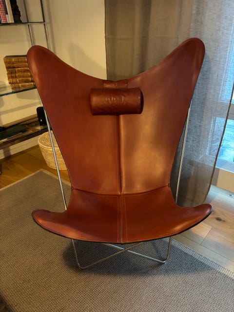 Fåtölj i brunt läder