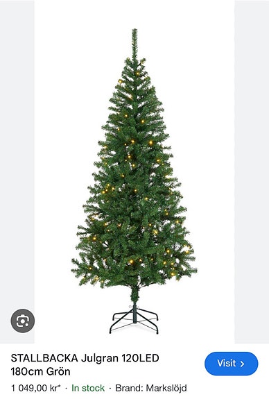 200 kr180 cm julgran med inbyggd ljusslinga från RustaSödertälje3 dagarGratis frakt•Köp nuLastbil i rörelseKan skickasLägg till i favoriter.