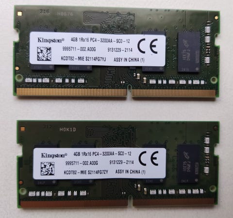 150 kr2 x 4GB Kingston PC4-3200 SO-DIMMSollentuna1 minKöp nuLastbil i rörelseKan skickasLägg till i favoriter.