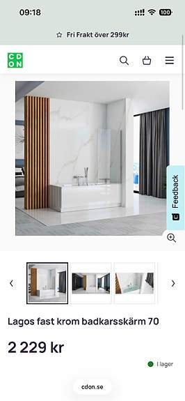 Duschvägg till badkar