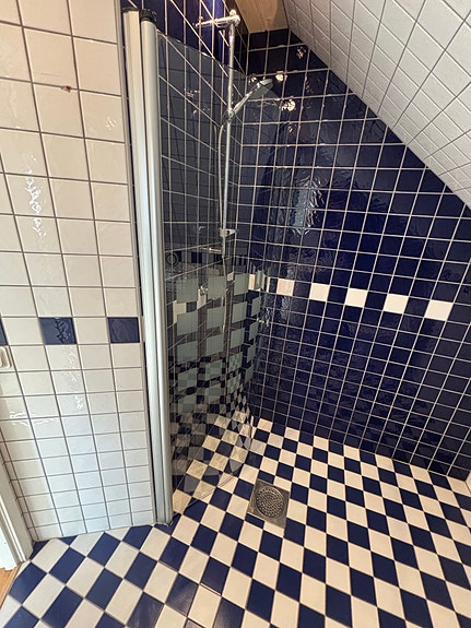 Duschvägg med rutmönster