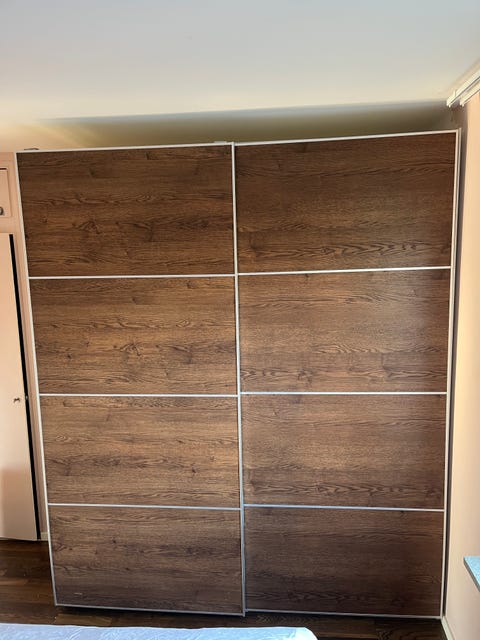 säng med madrass och Garderob