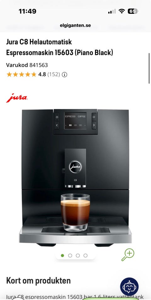 8 499 krJura E8 helautomatisk Impressa Kaffemaskin med mjölkskummare i silver och svartJohanneshov12 decLägg till i favoriter.