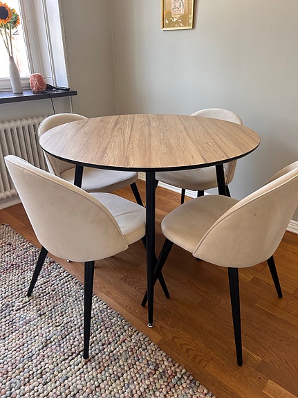 3 000 krVenture Home matgrupp runt bord med träskiva och 4 stoppade stolar beige Venture HomeDrottningholm1 timLägg till i favoriter.