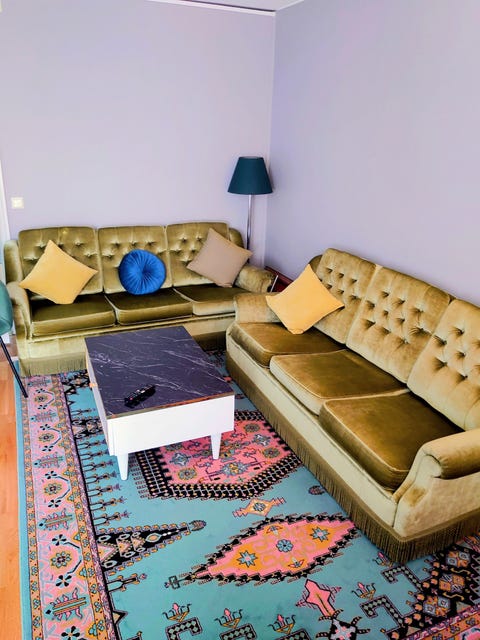 Rosa sammetssoffa